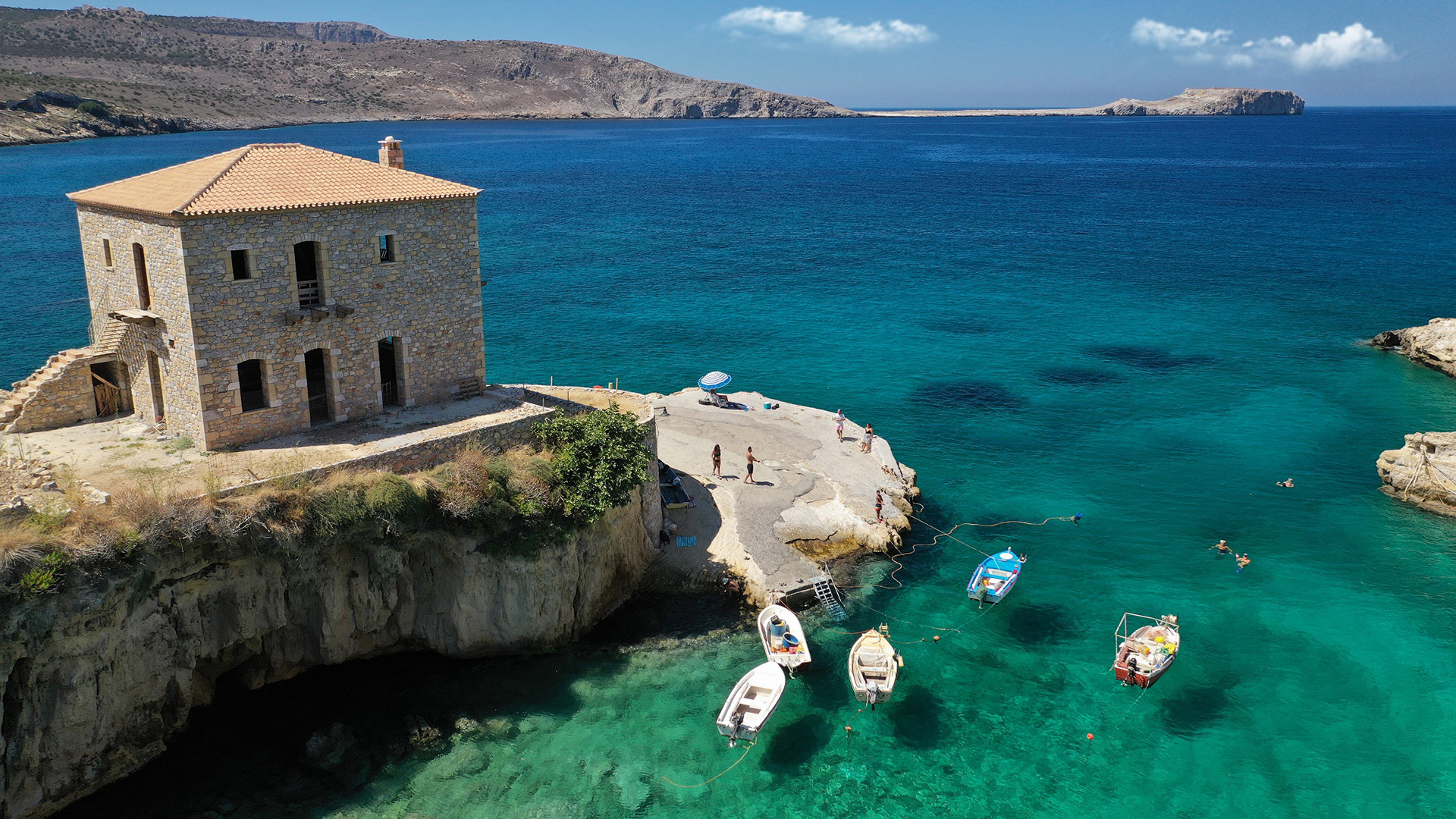 Sea breeze oasis retreat is located in Mezapos, a small coastal village in the prefecture of Laconia. Untouched by time, it is a little fishing port with a remarkable beach between two tall boulders that crushed and sculpted the beach. It boasts stunning panoramic views of the Tigani Bay, which is a popular challenge for hikers who may reach the 13th-century Frankish castle remains at the tip of Tigani after a 45-minute walk. Perfectly situated in an idyllic location, it is an ideal place to watch the magical sunset over the sea or witness the serene beauty of a new day dawning.