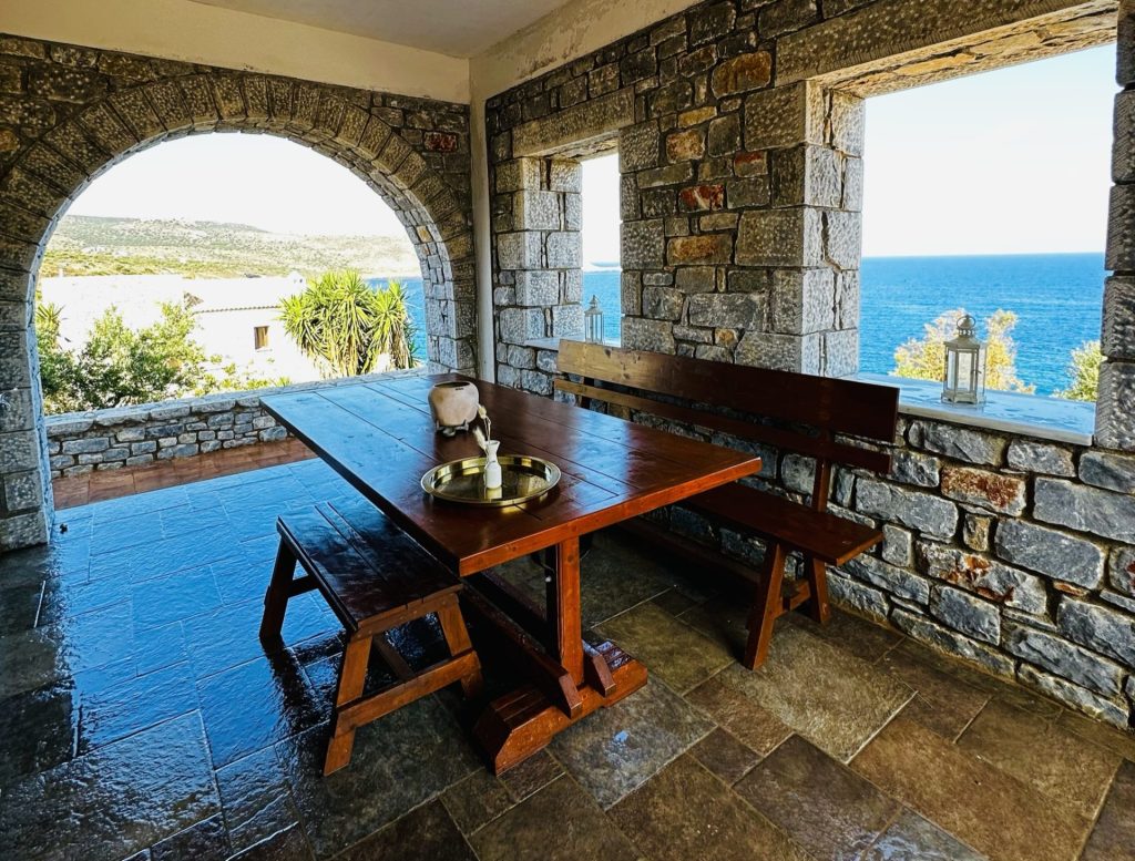 The Sea Breeze Oasis Retreat offers a pleasant and unique experience of staying in newly built Maniot Towers that combine traditional Mani architecture with the comforts of modern living. Each home consists of two levels. The first floor includes the kitchen, living room, dining area, and a WC. While the second floor has three bedrooms, a master bathroom and a balcony. Both homes are fully furnished and equipped, ensuring a comfortable stay. Furthermore, our guests have access to a private natural pool where they can swim in Mezapos’ crystal-clear waters.